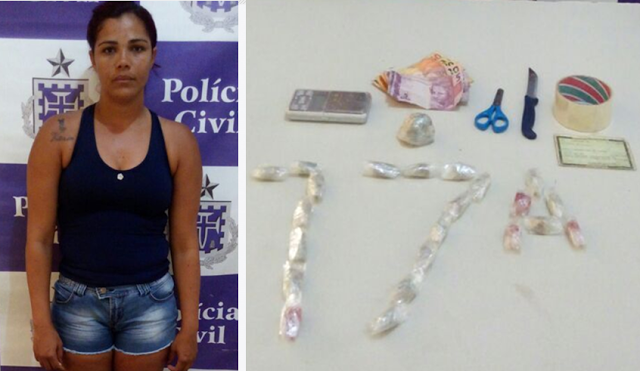 Após recebimento de denúncias de tráfico de drogas no Residencial Juazeiro I, os investigadores lotados no SI da 17ª COORPIN efetuaram nesta terça-feira (05) o monitoramento da suspeita denunciada, tendo então flagrado o instante em que ela pesava e embalava o produto criminoso, quando então a equipe apreendeu no lugar: 23 (vinte e três) pequenas pedras e 01 (uma) pedra maior de crack; 01 (uma) balança digital de precisão; a quantia R$ 110,00 (cento e dez) reais; 01 (uma) tesoura usada para fazer as embalagens; 01 (uma) faca de mesa e 01 (uma) fita adesiva