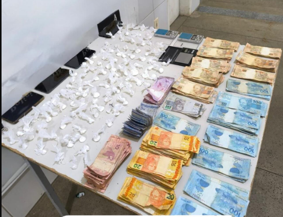 A eficácia da intervenção resultou na apreensão de uma quantia significativa de R$ 19.827,00 em espécie, além de 108 invólucros de substância análoga à cocaína, quatro aparelhos celulares e três balanças de precisão.