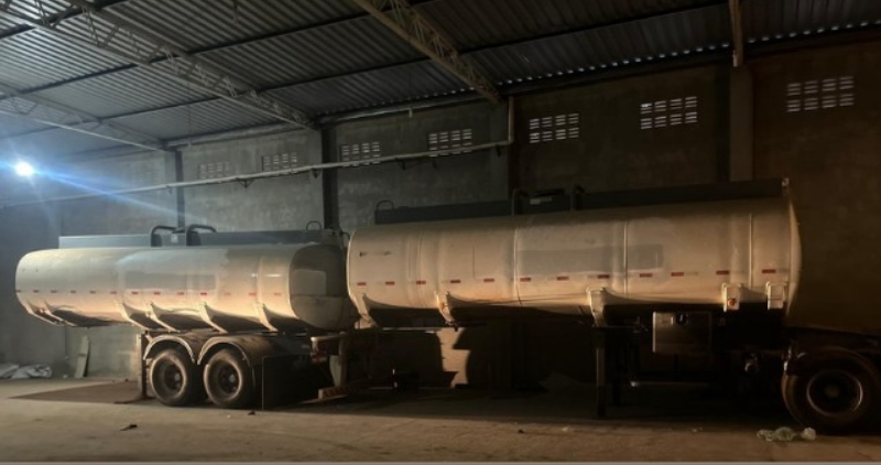 Com o avanço das investigações, os policiais chegaram até um galpão usado pelo grupo criminoso, onde foram encontrados dois semirreboques do tipo bitrem tanque com indícios de adulteração de chassi, além de aparelhos celulares, um notebook e dinheiro em espécie.